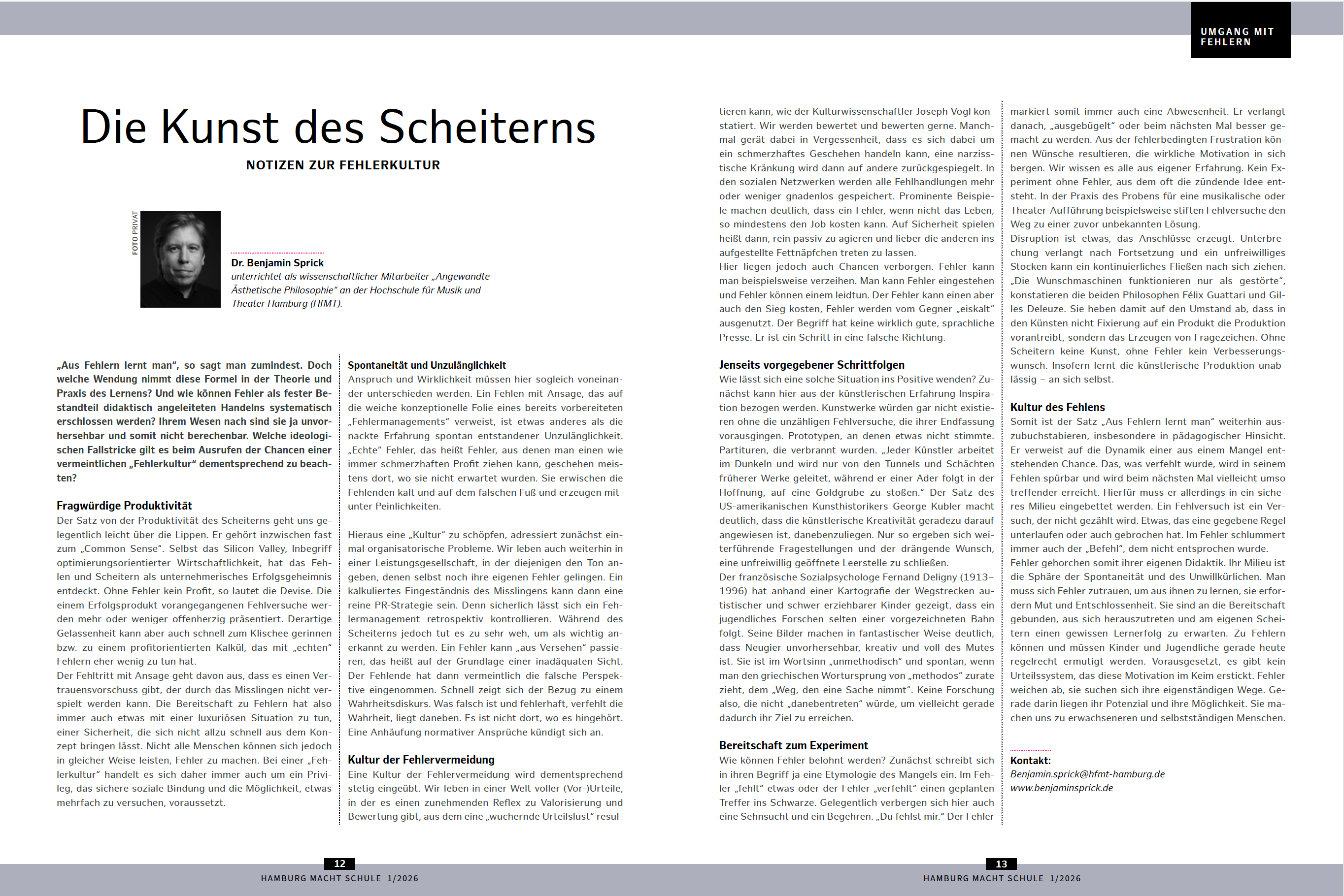 »›Aus Fehlern lernt man‹, so sagt man zumindest. Doch welche Wendung nimmt diese Formel in der Theorie und Praxis des Lernens? Und wie können Fehler als fester Bestandteil didaktisch angeleiteten Handelns systematisch erschlossen werden? Ihrem Wesen nach sind sie ja unvorhersehbar und somit nicht berechenbar. Welche ideologischen Fallstricke gilt es beim Ausrufen der Chancen einer vermeintlichen ›Fehlerkultur‹ dementsprechend zu beachten?«